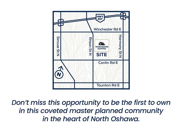 Winchester Estates, the newest and highly anticipated development by Menkes Developments, is a master-planned community featuring an exquisite selection of townhomes and detached homes at 2375 Ritson Road North in Oshawa, just south of Winchester Road. This community offers the perfect blend of spacious living, thoughtfully designed interiors, and a prime location, ensuring residents enjoy more leisure time and spend less time commuting.